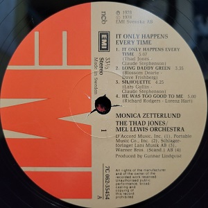 Sweden Ori Monica Zetterlund, The Thad Jones「It Only Happens Every Time」7C 062-35454 並べます♬